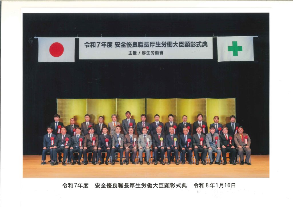 この度弊社社員の職長が厚生労働省様より‘‘安全優良職長厚生労働大臣顕彰‘‘を頂きました。